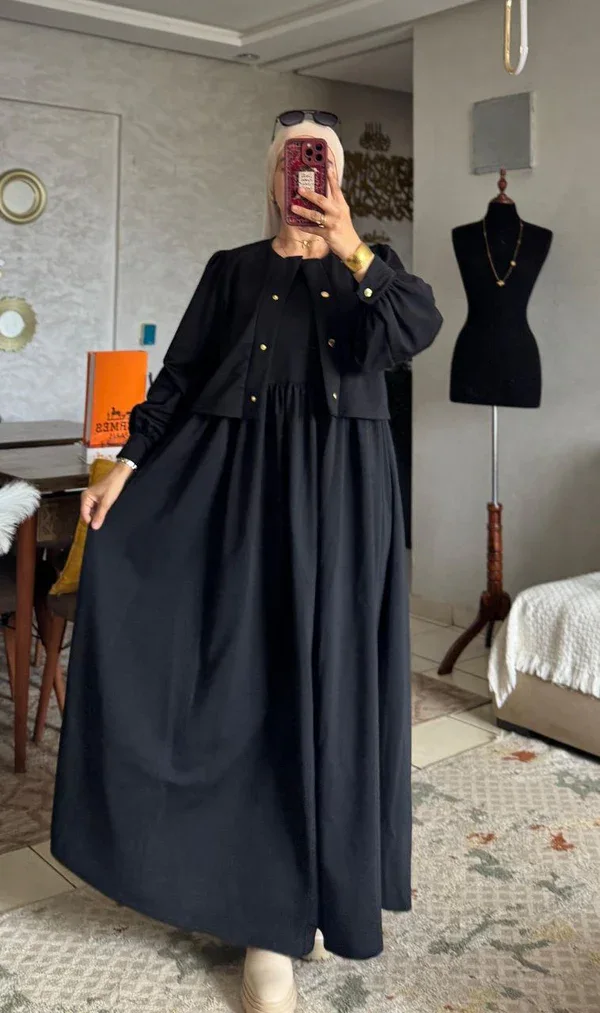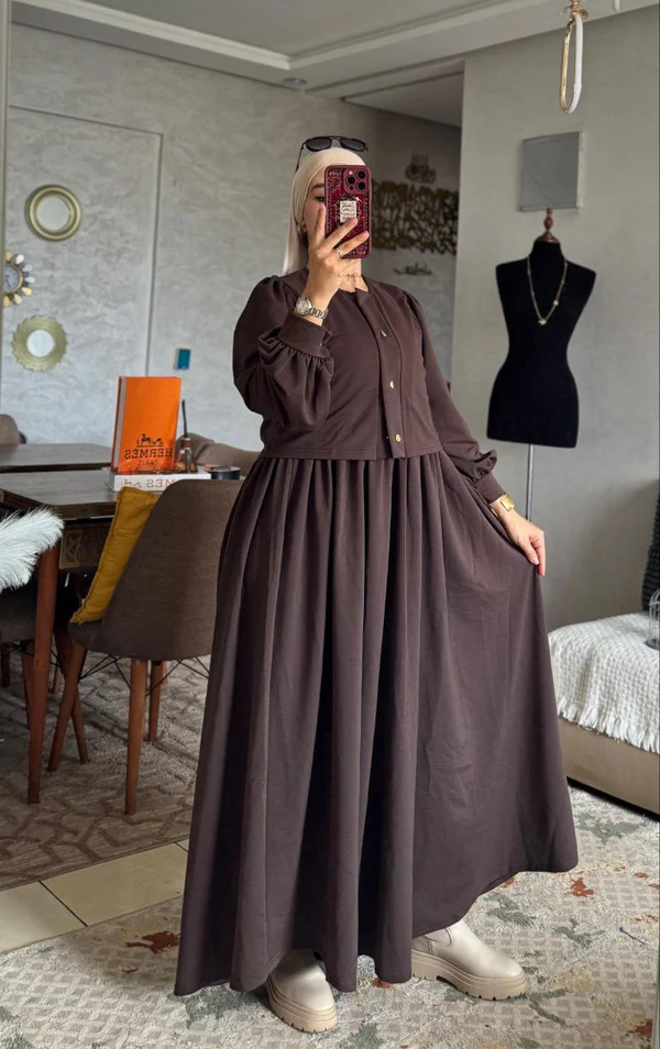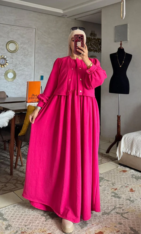 هاذ الفستان هو الاختيار المثالي لكل سيدة بغا تجمع بين الأناقة، الراحة، والفخامة 👌.