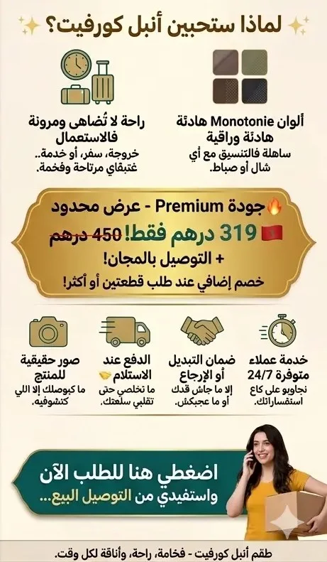 🚚 التوصيل 24 ساعة ✅ توصيل مجاني لجميع مدن المغرب 💵 الدفع عند الاستلام 🔁 ضمان الاستبدال في حالة عدم المطابقة 🛒 اطلبها الآن —